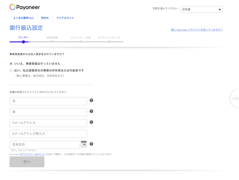 ステップ2:Payoneerアカウントを作成